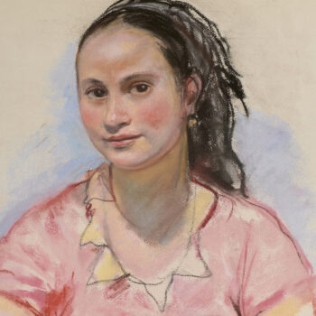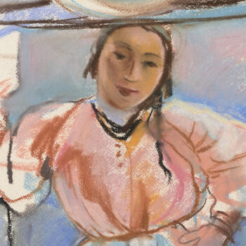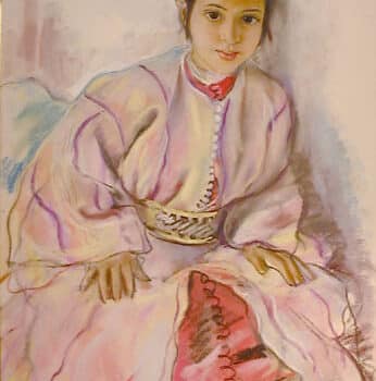 Jeune fille en rose assise.