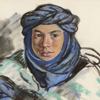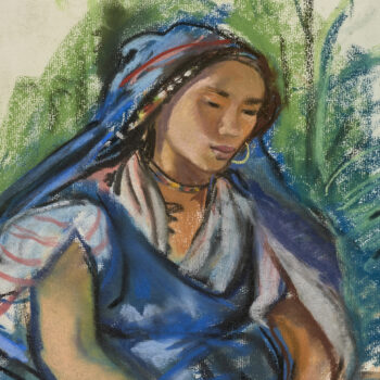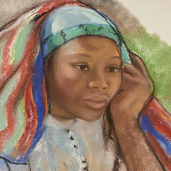 Jeune femme au turban bleu.