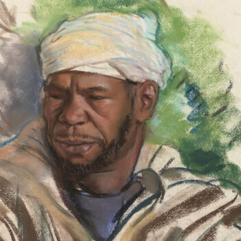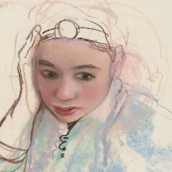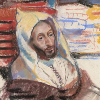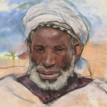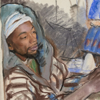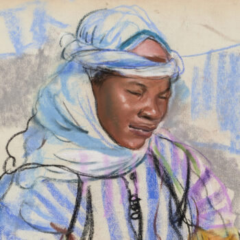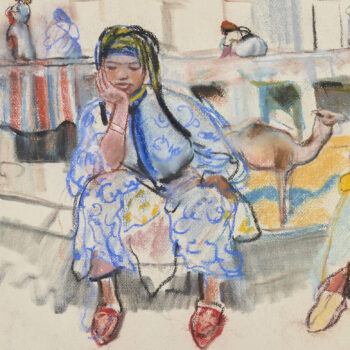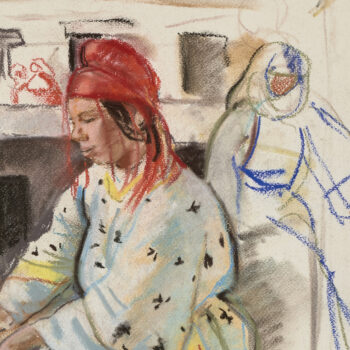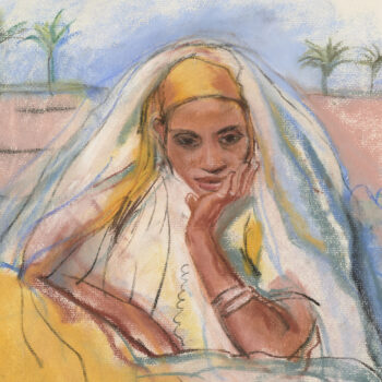 Croquis : femme dans le jardin du Palais de la Bahia, Marrakech