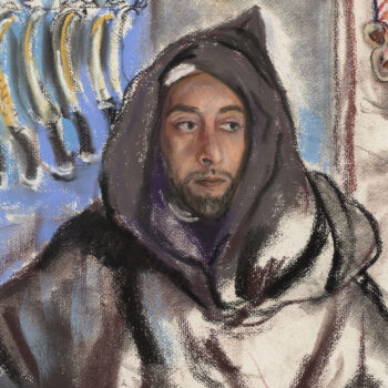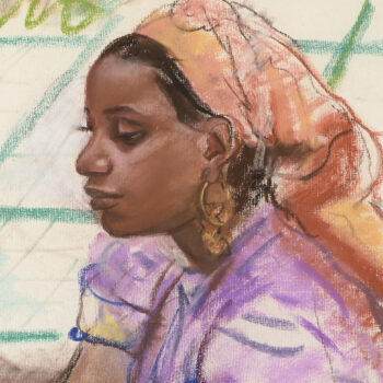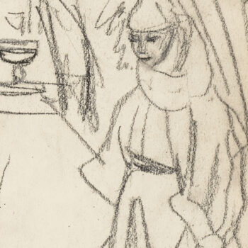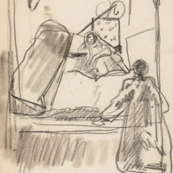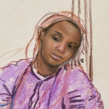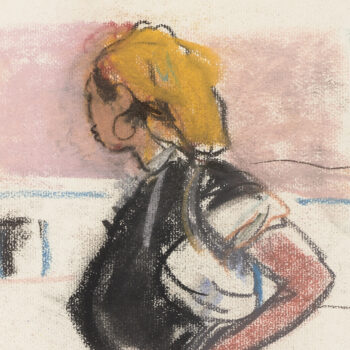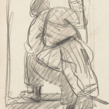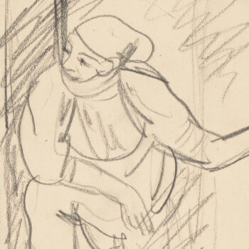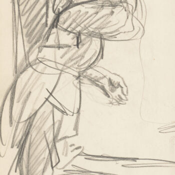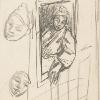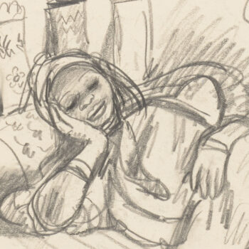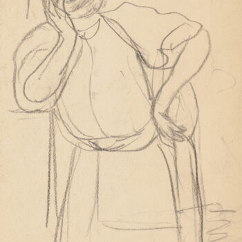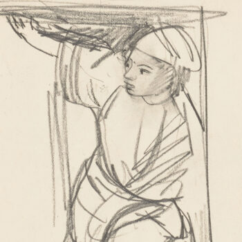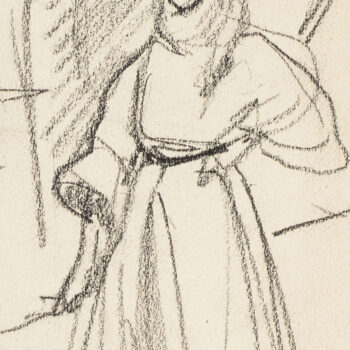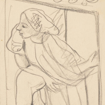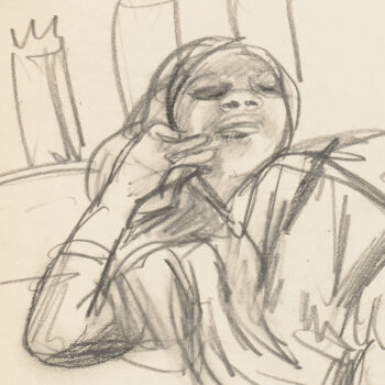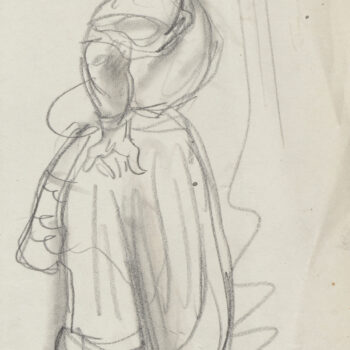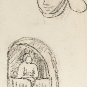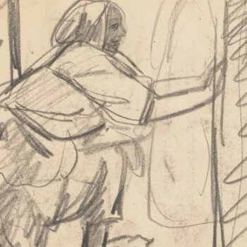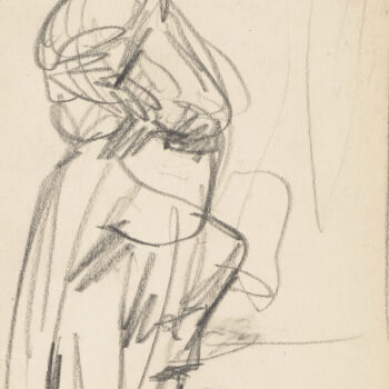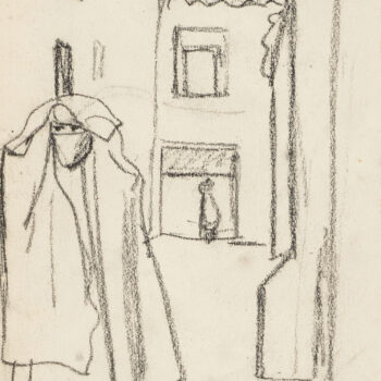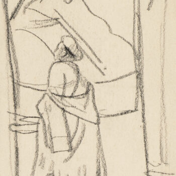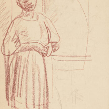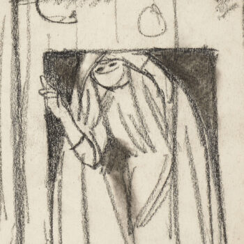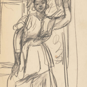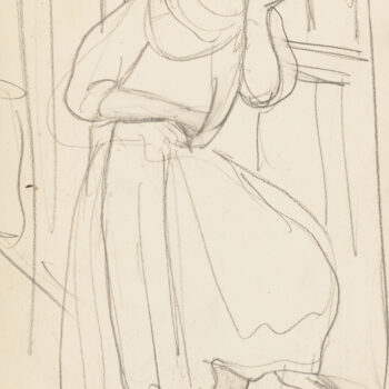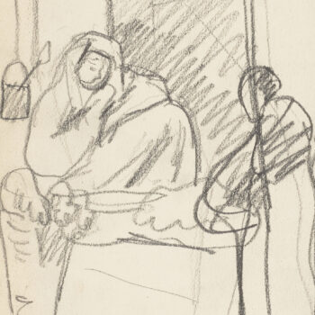 Croquis : femme assise derrière la porte