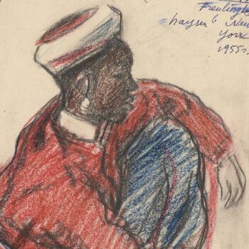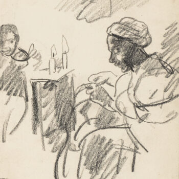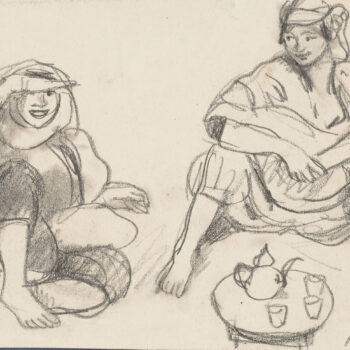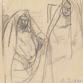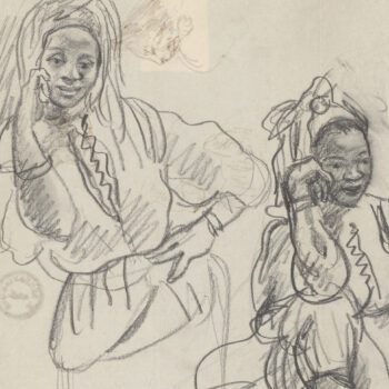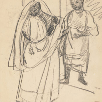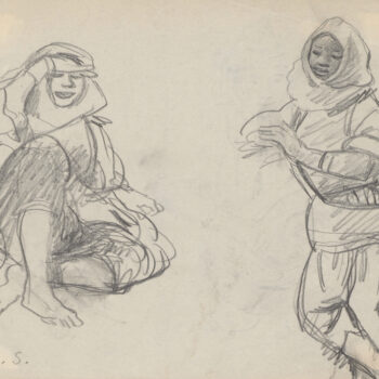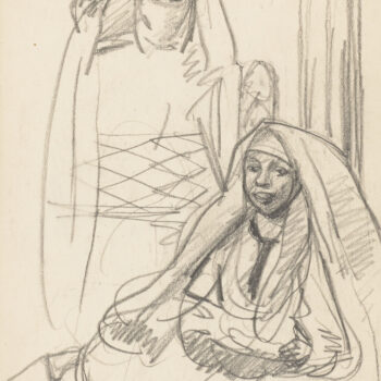 Croquis : femmes, l’une voilée debout, l’autre noire assise