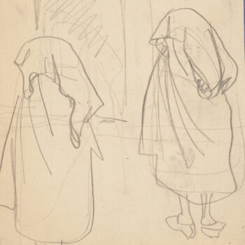 Croquis : femme voilée, de dos
