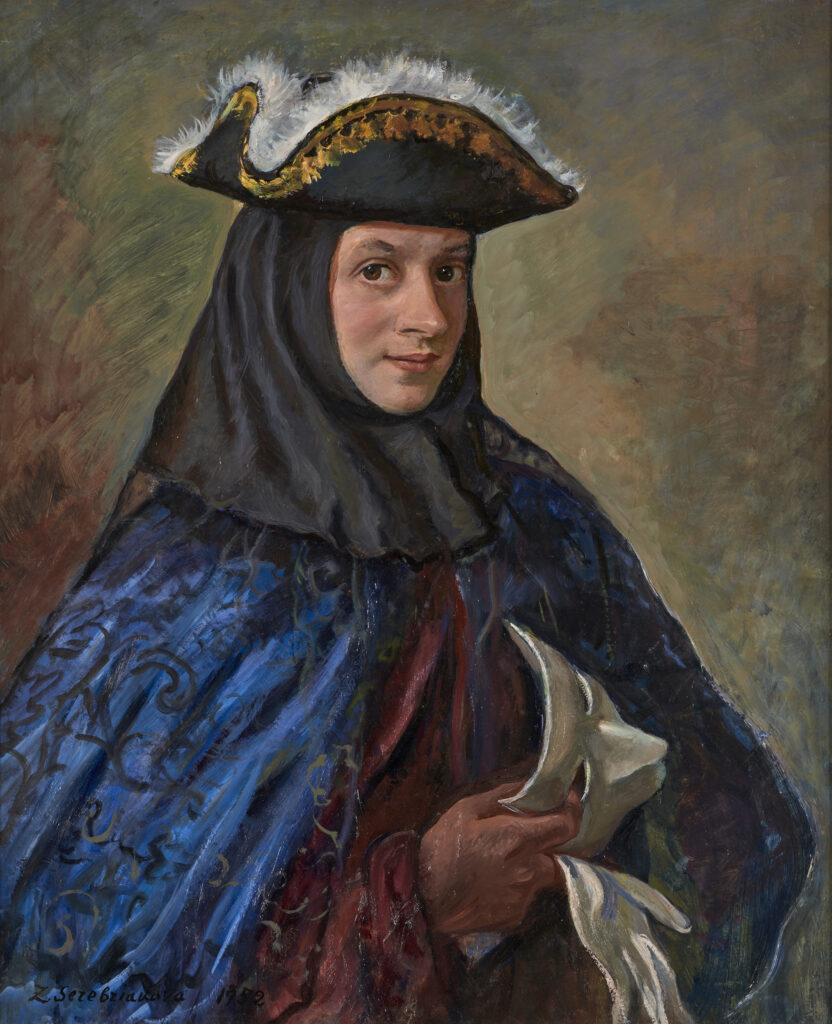 « Portrait de Mr Alexandre Sérébriakoff (huile) en Costume de Domino pour le Bal Costumé du Palais Labia, à Venise donné par Mr Ch. de Beistegui le 3 septembre 1951. / Peint par Mme Zenaïde Serebriakova artiste-peintre (sa mère) en 1952 »