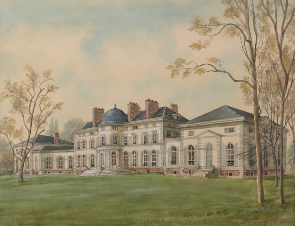 « N° inventaire. I.019 / A. SEREBRIAKOFF / CHATEAU DE / GROUSSAY. / à Montfort / l’Amaury / Façade sur le PARC »