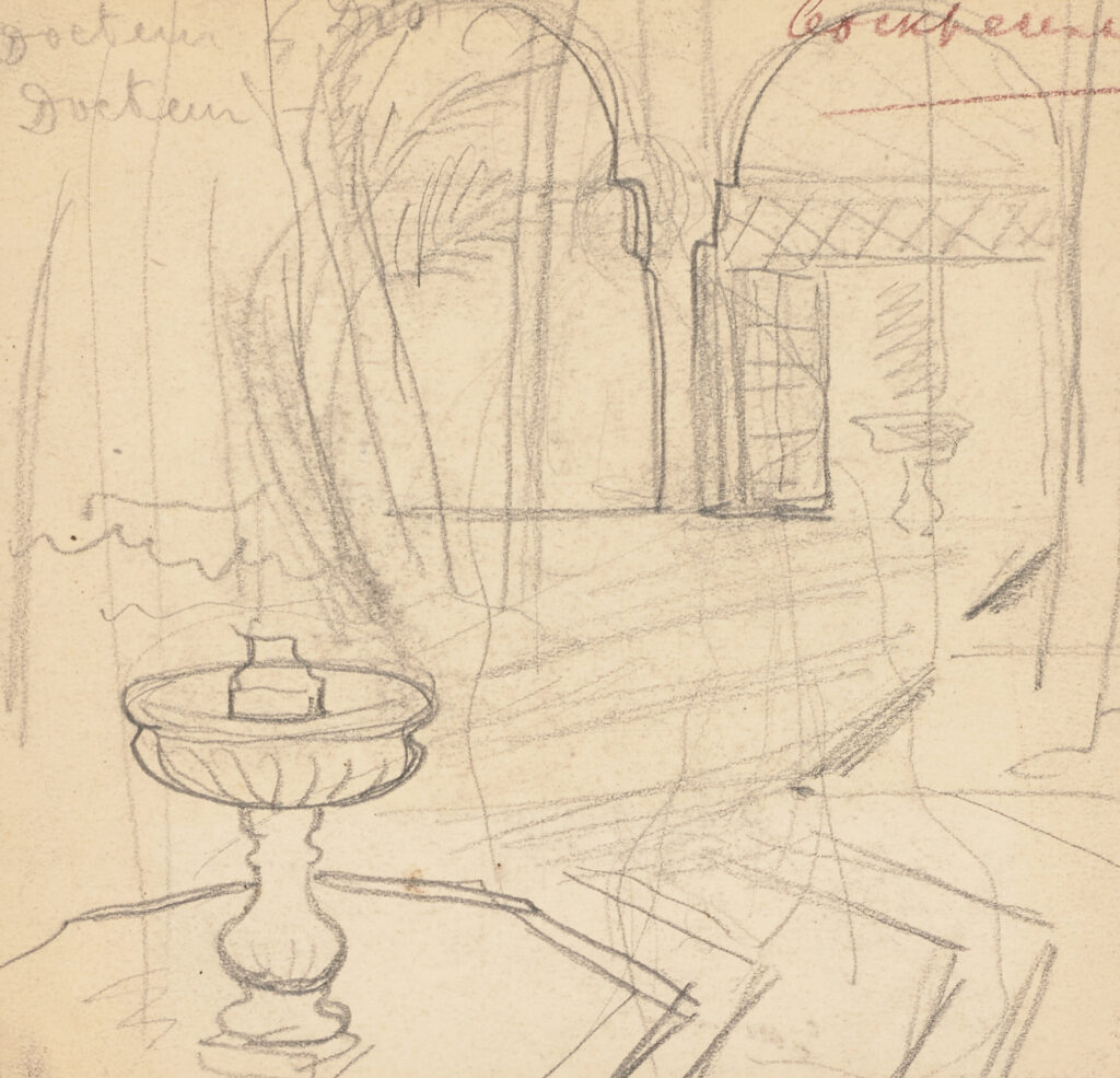 – Inscription à la sanguine en russe « Воскресенье » [« Dimanche »] : recto, angle supérieur droit