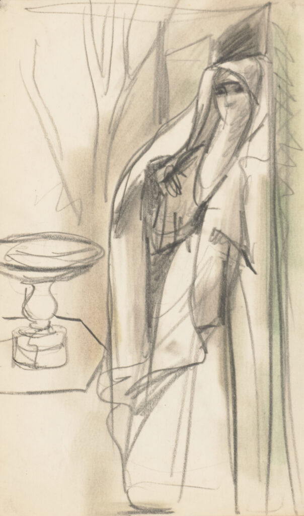 Crayon noir et vert, pierre noire et estompe sur Papier