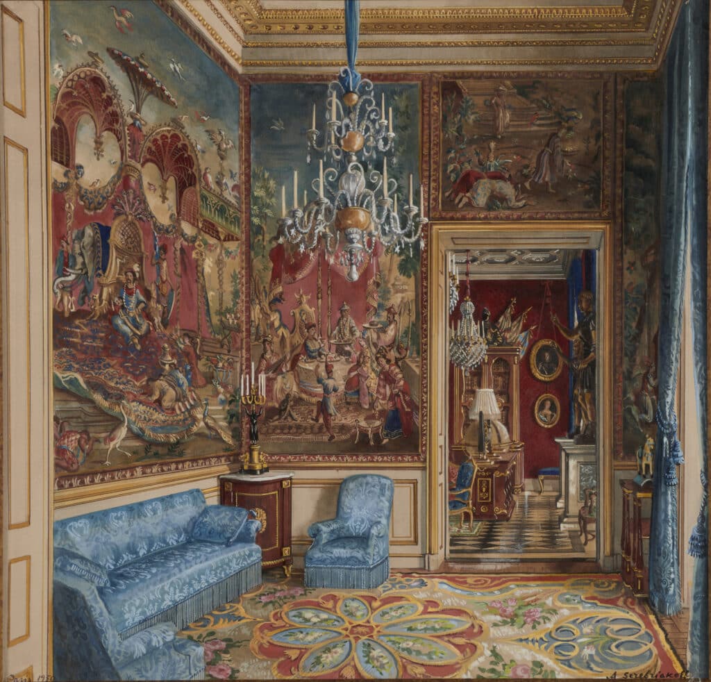 Inscription au dos « 224 / L’HÔTEL DE / MR CH. DE BEISTEGUI / à PARIS / Rue de Constantine / SALON / DE TAPISSERIES. / PAR A. SEREBRIAKOFF / N° d’inventaire I.009 / W 350 »